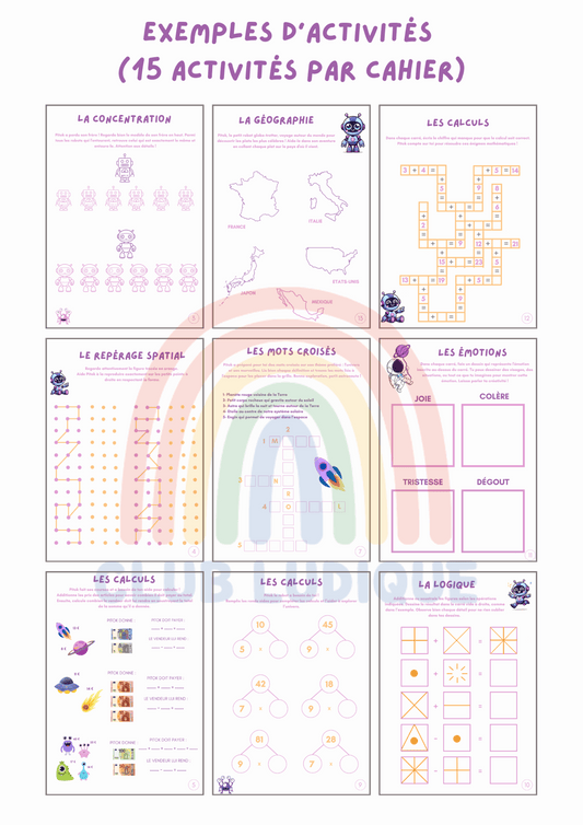- 8 à 10 ans 🚀 : Activités avancées pour stimuler la réflexion, la logique et le développement de compétences plus complexes.